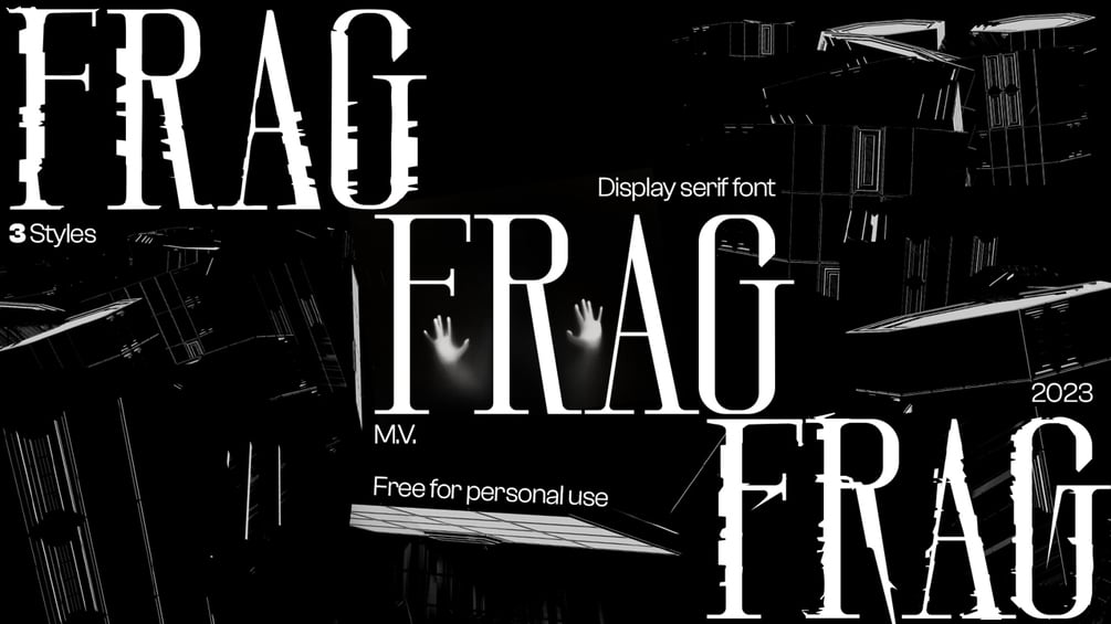 Frag fontMishaFrag font. 3 styles. Inspired by glitch aesthetics.Free for personal use.€10+10eurCommercial use110eurName a fair price:€I want this!3 styles of font .otf filesPersonal useAdd to wishlist New wishlistShareShare on XShare on Facebook Copy linkCopy product URL