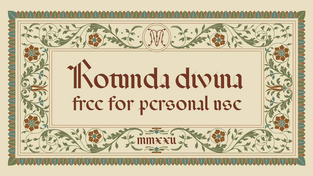 Rotunda divina fontMishaThis font is inspired by formal calligraphic style Rotunda.€2+2eurCommercial licence12eurName a fair price:€I want this!.ttf fileSize47.7 KBAdd to wishlist New wishlistShareShare on XShare on Facebook Copy linkCopy product URL